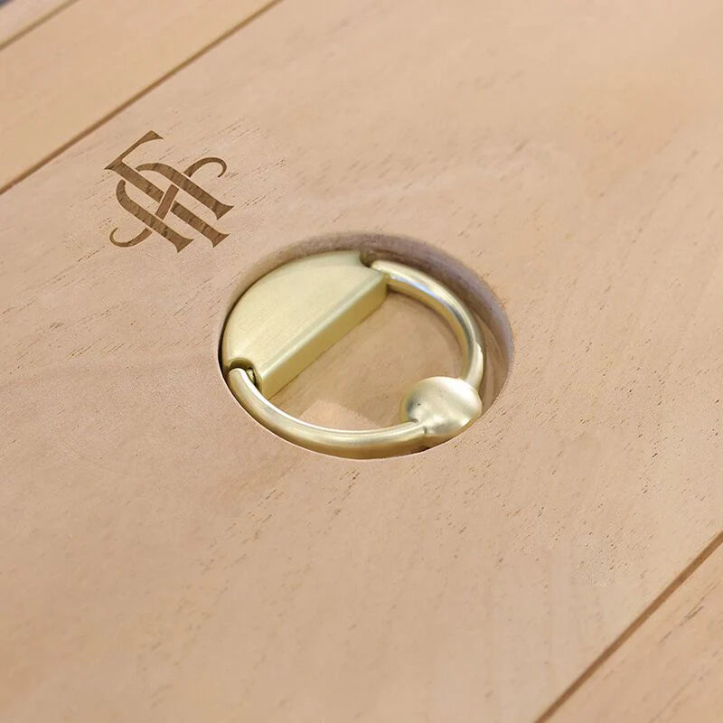 Die fachmännisch aus spanischer Zeder gefertigte Afidano Zigarrenkiste ist die perfekte Aufbewahrungslösung für Zigarrenliebhaber. Mit ihrem geräumigen Design kann diese Kiste bis zu 80-100 Zigarren aufnehmen, wobei ihre Qualität und ihr Geschmack erhalten bleiben. Halten Sie Ihre Sammlung organisiert und geschützt mit dieser hochwertigen Zigarrenkiste.